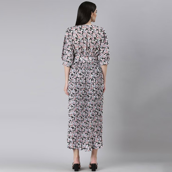 Black & pink floral print fit & flare dress